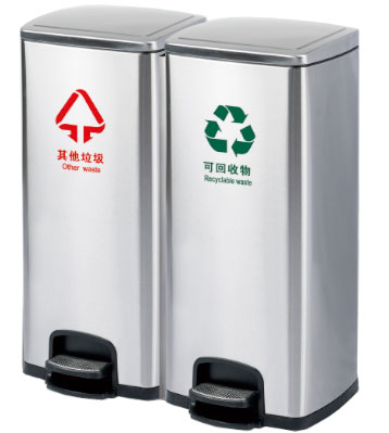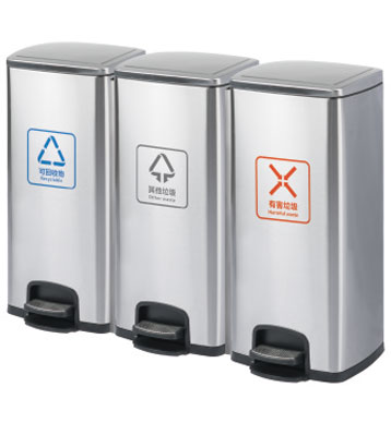 不銹鋼室內(nèi)三分類腳踏垃圾箱