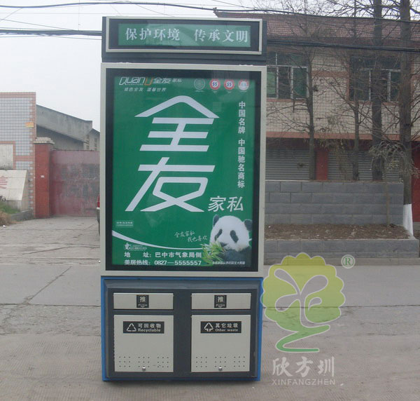 商業廣告垃圾桶的型號規格:GG3,900*400*2000mm,隨著城市美化與亮化的推進,垃圾箱將會在城市的發展中擔當重要角色,作為一與百姓生活密切相關的載體,在垃圾桶上刊登廣告將能夠有效吸引消費者的眼球,產生非常好的廣告效果,對于樹立公司良好形象以及提高公司知名度,并提高廣告招商力度具有深遠的意義。廣告垃圾桶燈箱具有、投入成本低,直接受眾效果好。 相比較其他形式的廣告而言垃圾桶廣告的成本相當低而且是直接面向廣告受眾,貼進消費者,形成高覆蓋網絡規模廣告效應。比起電視和報紙廣告來說有著無法擬比的優勢。