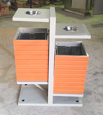 產品材質:欣方圳公園創意分類鋼木垃圾桶采用現代化批量制作工藝