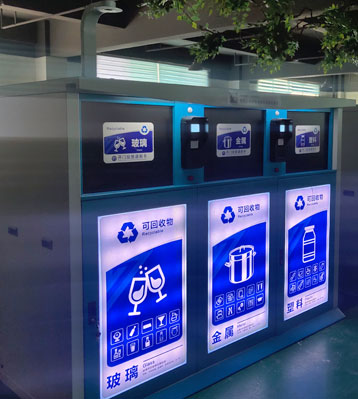 功能特點:三分類智能環保垃圾箱從源頭做好玻金塑紙織物廚余有害其他8分類居民生活垃圾收集,配240升大容量塑料內桶,內置智能自動稱重模塊,后臺時刻檢測回收箱垃圾重量,滿溢自動停用功能并自動發送預警信息及時清運;帶感光燈控開關傍晚會自動開啟照亮功能;通過掃描二維碼/刷卡才可打開箱門投放,垃圾投放后自動稱重投口箱門自動復位,有效防止異味散發清潔環保。