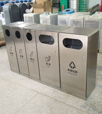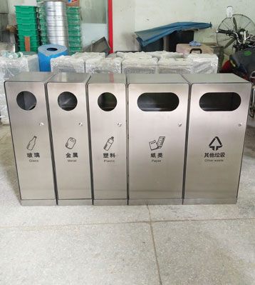 產(chǎn)品材質(zhì):戶外五分類垃圾箱采用現(xiàn)代化批量制作工藝,選用優(yōu)質(zhì)冷軋鋼板,核心部件模壓成型不脫焊不易破損堅(jiān)固耐用。表面經(jīng)過(guò)除油、噴砂防銹處理后,再進(jìn)行酸洗磷化處理,鋼制桶表面清理后整體進(jìn)行靜電噴涂或烤漆處理,靜電噴涂是經(jīng)過(guò)流水線高溫固化爐固化后再出爐冷卻,漆面色澤耐久,防腐防銹。