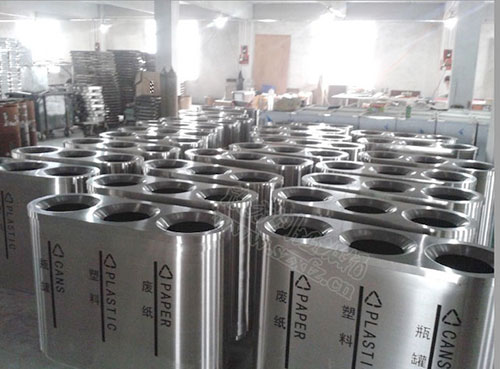 ??先來看看此批被采購的欣方圳不銹鋼果皮箱。這批C131三孔分類環保回收箱通體采用了304#優質不銹鋼材料模壓成型,堅固耐用。不易變形,完美結合的蓋子、蓋下后桶沿平各均勻,桶頭噴涂光滑采用防撞設計,避免高人流時不經意的磕碰對人身造成傷害。不銹鋼果皮箱整體內外光潔,易于清潔員清理,而且細節處理到位,無利口,不傷手顏色與桶生絲印色一致,合頁加粗。桶身表面印有可回收垃圾、瓶罐回收和其他垃圾等字樣;重要的是不銹鋼果皮箱阻燃效果極佳,極其合適商場、地鐵、機場、等場所使用。質量上乘經久耐用,最重要是價格實惠美觀的。