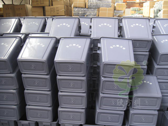 欣方圳戶外社區塑料垃圾桶廣泛用于公共環衛,規格470*330*760mm,型號B07。